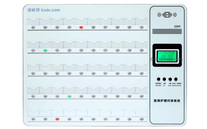 8、語(yǔ)音報(bào)號(hào):分機(jī)呼叫主機(jī)時(shí)主機(jī)有LED路選指示燈閃亮、音樂聲提示、語(yǔ)音播報(bào)“XX號(hào)呼叫的床位號(hào)碼,分機(jī)和旋音樂提示
